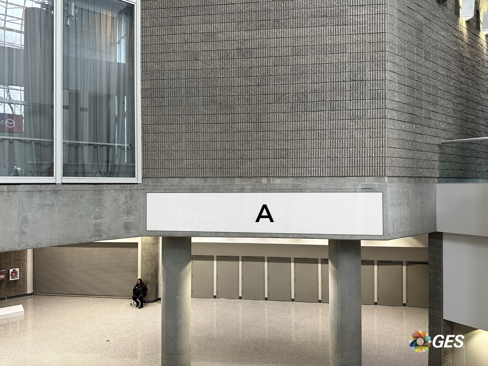 Located above escalators on level 2 down to the entrance to Halls B1 and B2 on level 1