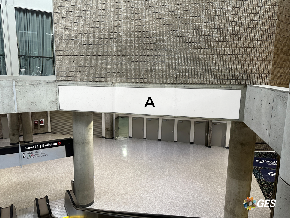 Located above escalators on level 2 down to the entrance to Halls B1 and B2 on level 1