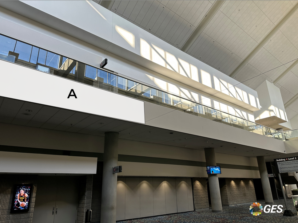 • Located in the Building B level 4 overhang visible from level 3 (Banner above education area doors)