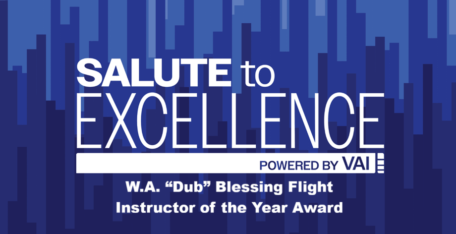 -Access for two to the VAI Presidential Salute To Excellence event<br />-Sponsor recognition on award winner promotional materials on show signage, in press announcements, on<br />website announcements, and in POWER UP (formerly ROTOR) magazine article about the award winner</p> <p><strong>The W.A. “Dub” Blessing Flight Instructor of the Year Award recognizes a helicopter or UAS aircraft flight instructor for superlative contributions in upholding high standards of professionalism.</strong></p>">